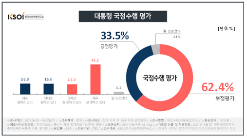 대통령 국정수행, 긍정 평가 33.5% - 부정 평가는 62.4%