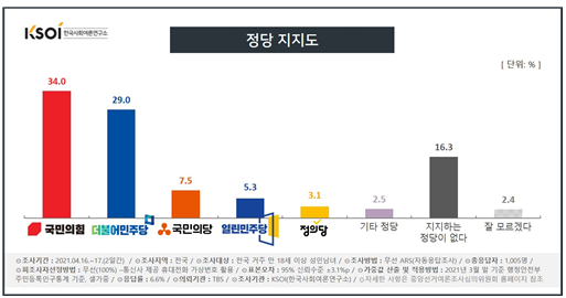 국민의힘 34.0% - 더불어민주당 29.0% ...