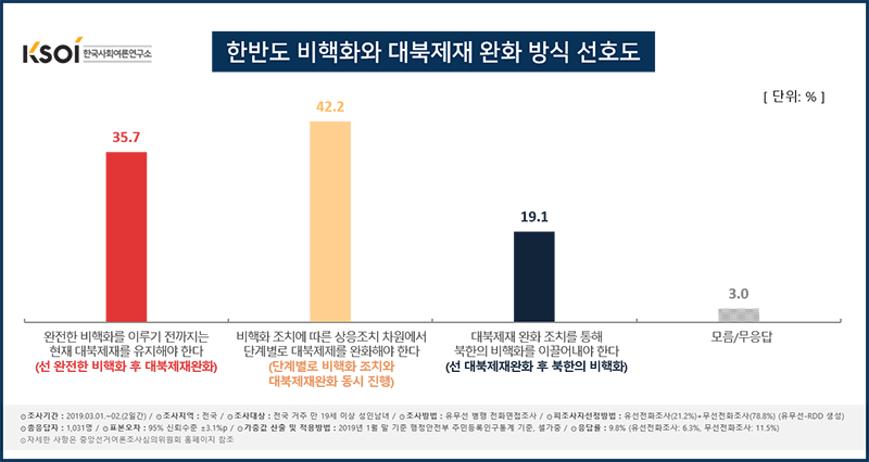 비핵화와 대북제재 완화 방식, ‘단계별로 동시 진행’ 42.2%